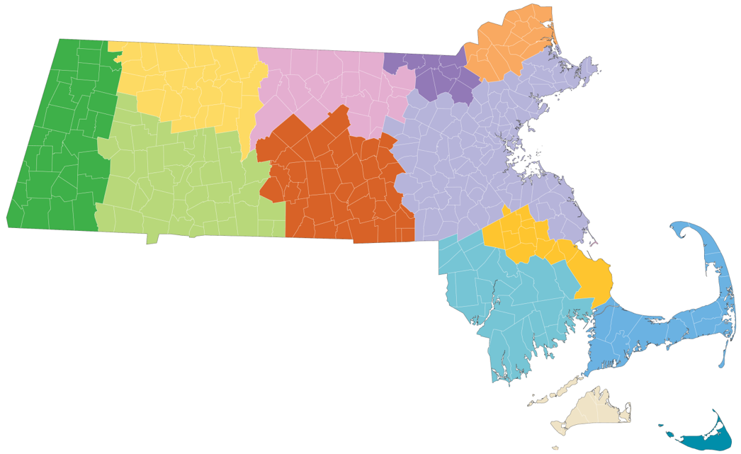With the exception of the Boston Region MPO, the planning regions are denoted in tables in this report by the initials of the administering RPA.