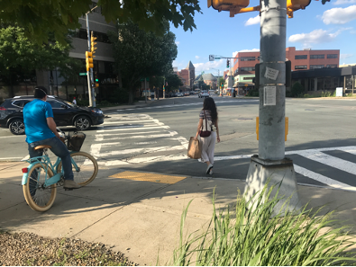 On August 6, 2020, during one hour of peak PM travel, MPO staff counted 92 pedestrians and 21 bicyclists. Staff observed the greatest number of pedestrians traveling southward on the western side of the intersection, toward the direction of Walgreens from the northwest corner where Commerce Place is located. Many bicyclists observed at the intersection were traveling along the sidewalks.