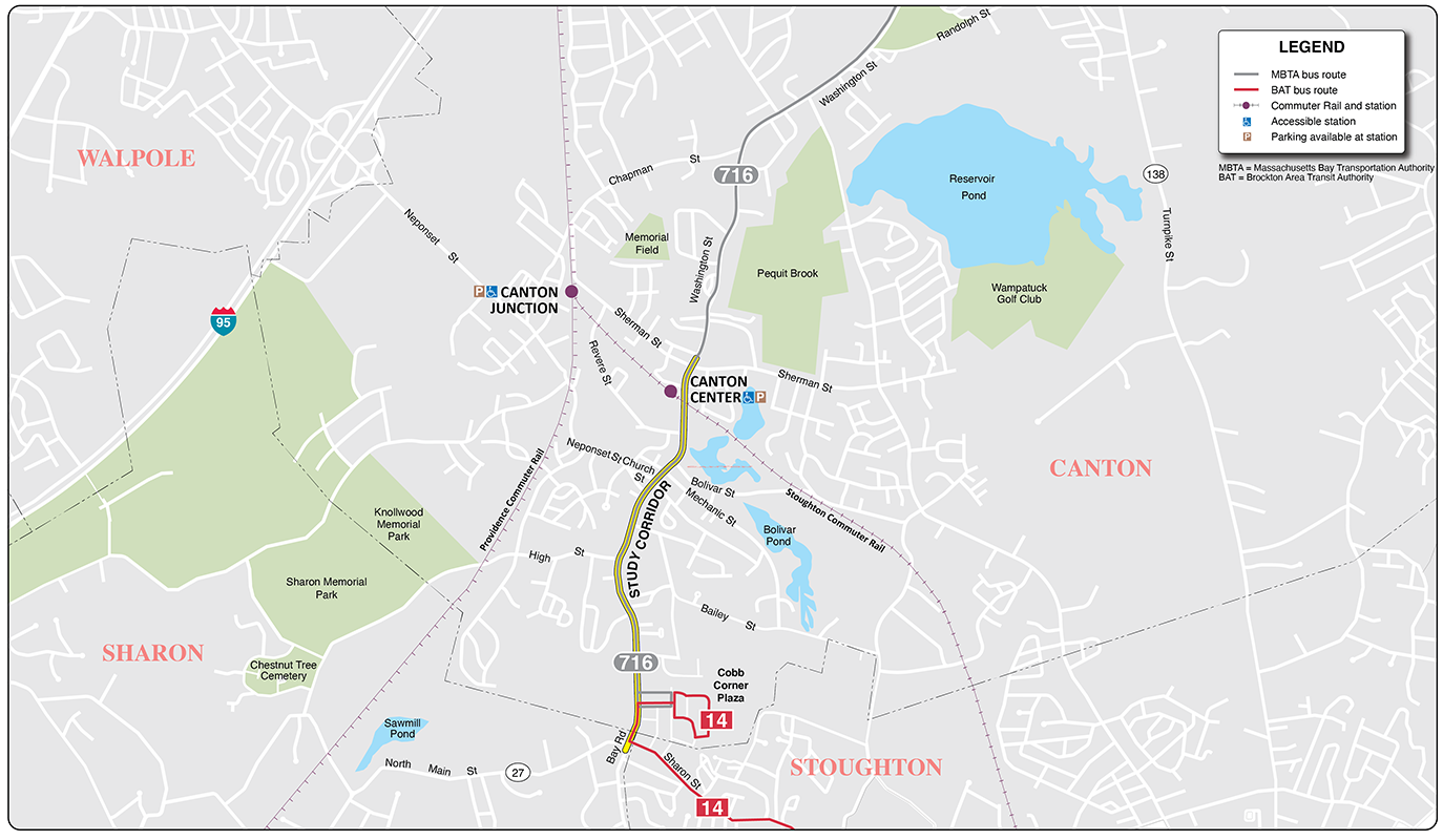 Meanwhile, achieving the proposed Complete Streets vision for the corridor and the adjacent commercial district via the recommended improvements would require significant effort and collaboration on the part of all stakeholders, including the Towns of Canton, Sharon, and Stoughton, residents, property and business owners, BAT, MBTA, and Massachusetts Department of Transportation (MassDOT) Districts 5 and 6.