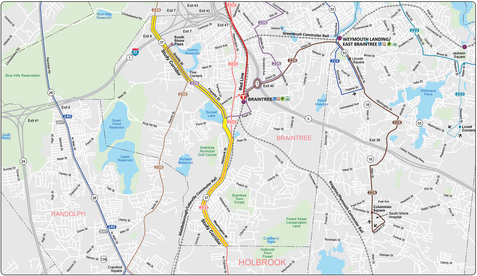 Figure 7 Transit Services Around Route 37, Braintree