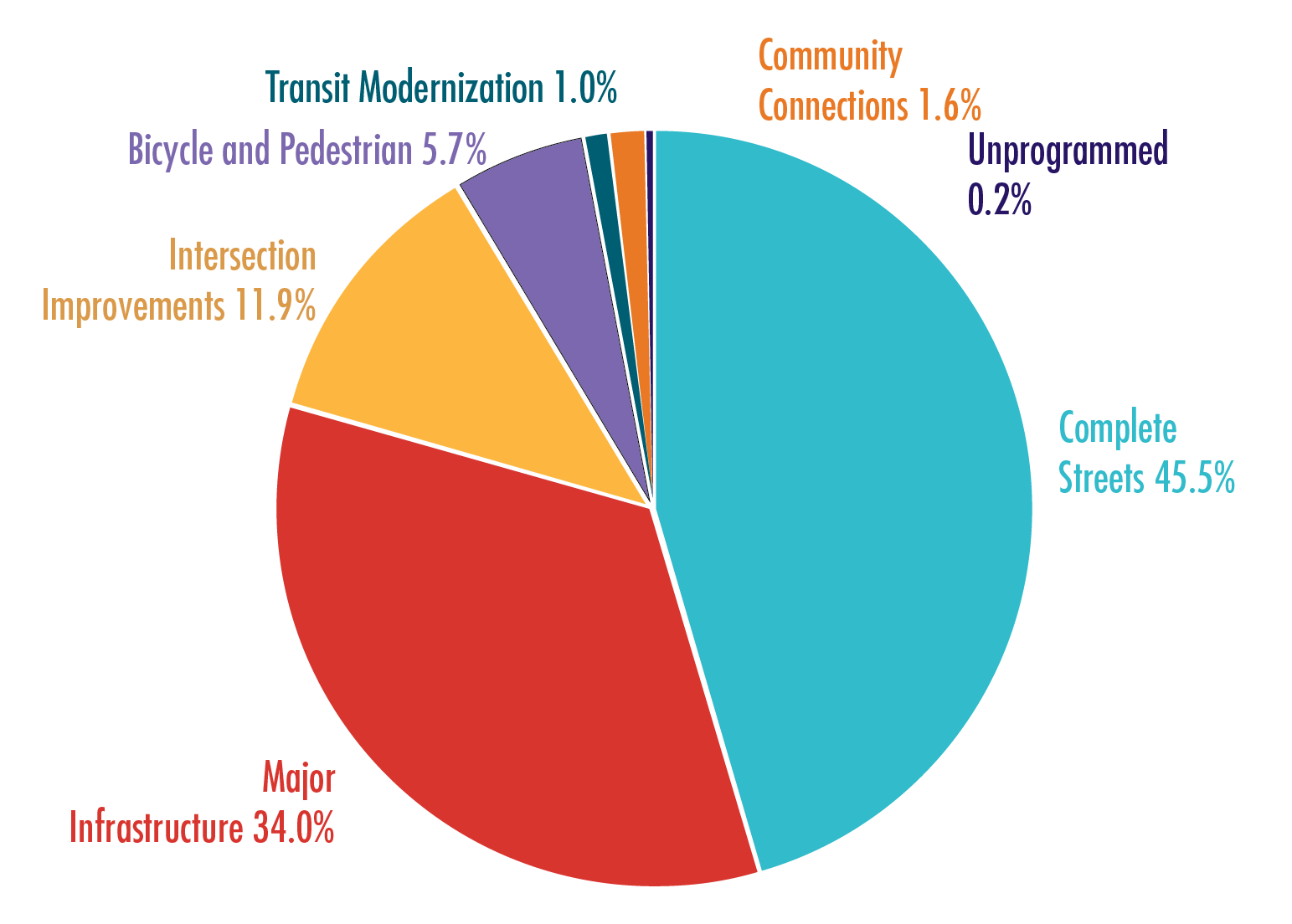 De acordo com a legislação federal de transporte, a Lei de Transporte de Superfície da Fixing America (ou FAST), o financiamento é alocado pelas seguintes categorias:
