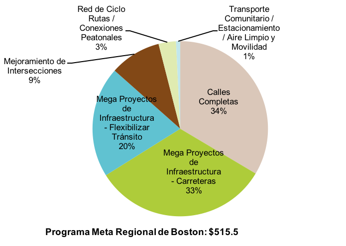 Cada MPO puede decidir cómo priorizar la financiación de su Meta Regional. Dado que el financiamiento de la Meta Regional es un subconjunto del Programa de Autopistas, la MPO normalmente destina la mayor parte de los fondos para proyectos de carreteras, sin embargo, la MPO ha repartido parte de su financiamiento de carreteras para el Programa de Tránsito para proyectos de expansión. El Programa de Autopistas del TIP detalla los proyectos que recibirán fondos de la Meta Regional de la MPO de la Región de Boston, así como proyectos de infraestructura a nivel estatal en la Región de Boston.